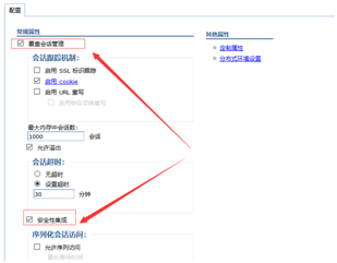 使用的服务器的名称(server1)–>单击会话管理 –>在常规属性中,勾选覆盖会话管理和安全性集成 。