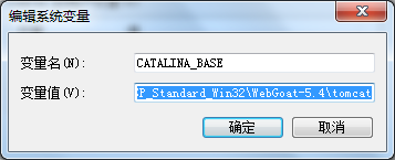 a.) 新建变量名:CATALINA_BASE,变量值:C:…WebGoat-5.4tomcat (变量值为tomcat的路径,打开解压之后的webgoat文件夹,里面自带了tomcat)
