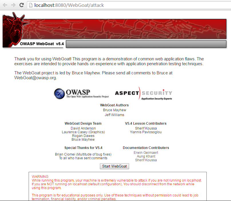 c.) 登录完成后,将出现以下界面,表示webgoat安装完成!