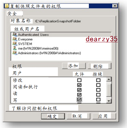 快照文件夹的设置也需要授予适当的权限。 现在不需要太多细节,授予对文件夹本身的“Authenticated Users”(图5)的写访问权限,并对共享上的“Everyone”(图6)进行读取访问。 有关如何加强这一领域安全的更多信息将在本阶段的更高级别中给出。