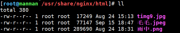 [root@manman /html/www]# mkdir /html/share mkdir: cannot create directory ‘/html/share’: File exists [root@manman /html/www]# cd /html/share/ [root@manman /html/share]# echo 网站使用说明 >readme [root@manman /html/share]# ll total 8 -rw-r--r-- 1 root root 10 Sep 28 23:48 oldboy.txt -rw-r--r-- 1 root root 19 Sep 29 14:44 readme [root@manman /html/share]# cd /etc/nginx/conf.d/ [root@manman /etc/nginx/conf.d]# ll total 12 -rw-r--r-- 1 root root 153 Sep 28 20:53 bbs.conf -rw-r--r-- 1 root root 135 Sep 28 23:41 share.conf -rw-r--r-- 1 root root 138 Sep 28 20:49 www.conf [root@manman /etc/nginx/conf.d]# cat share.conf server { listen 80; server_name share.oldboy.com; root /html/share; autoindex on;