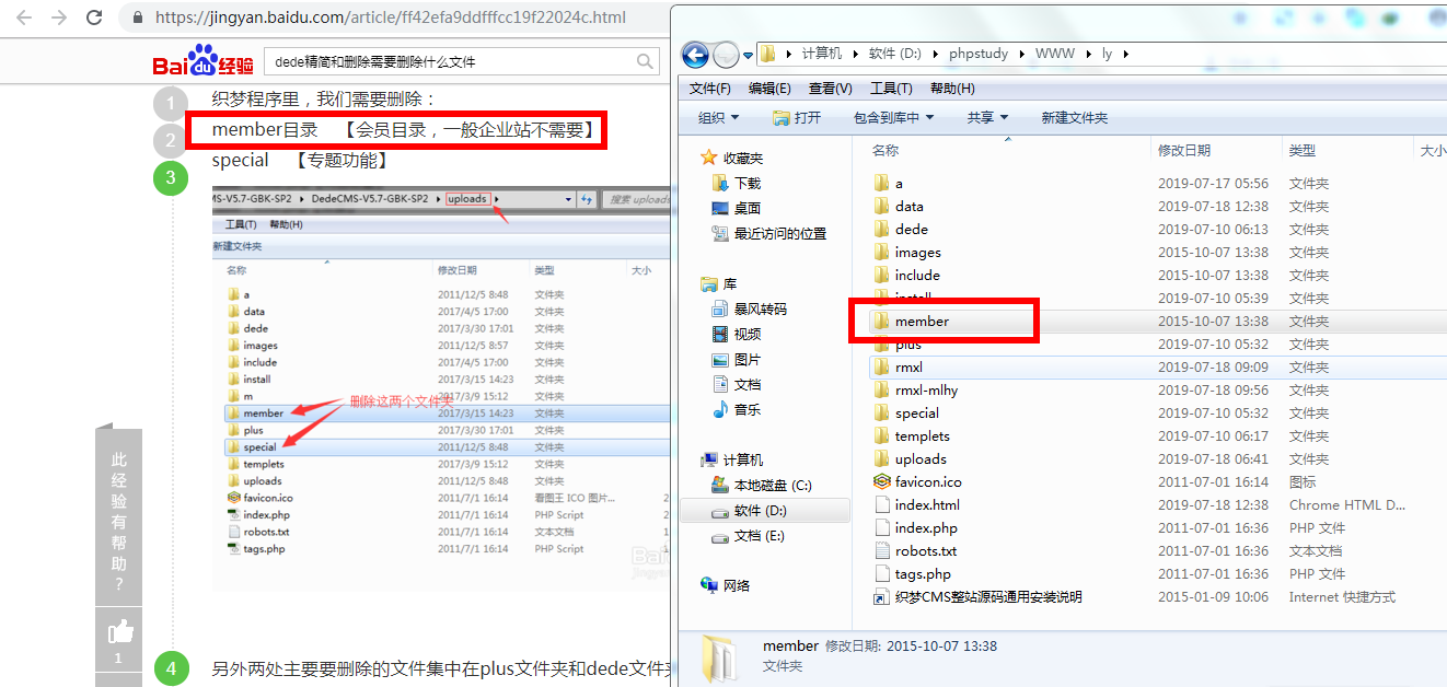 然后开始搞事情,第一步我们来到网站的根目录删除掉member(会员目录,由于我们的是企业站点,无需会员的)目录