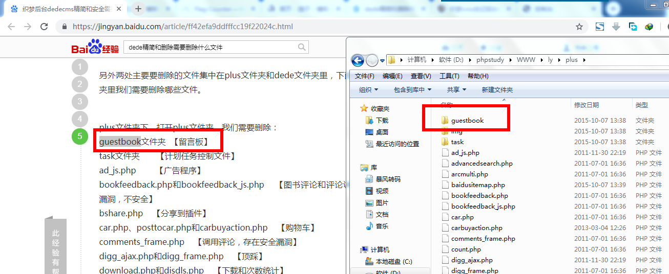 第三步进入plus文件夹,删除掉 guestbook(留言板) 文件夹