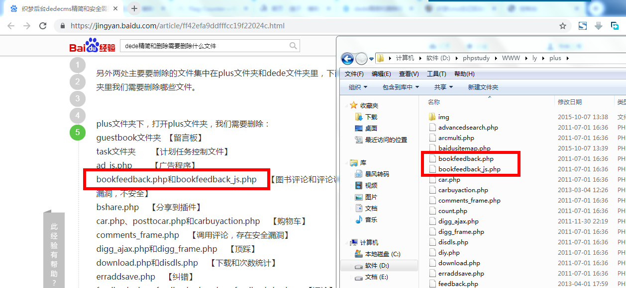 第六步:plus 目录下的 bookfeedback.php和bookfeedback_js.php(图书评论和评论调用文件,存在注入漏洞,不安全) 删除掉