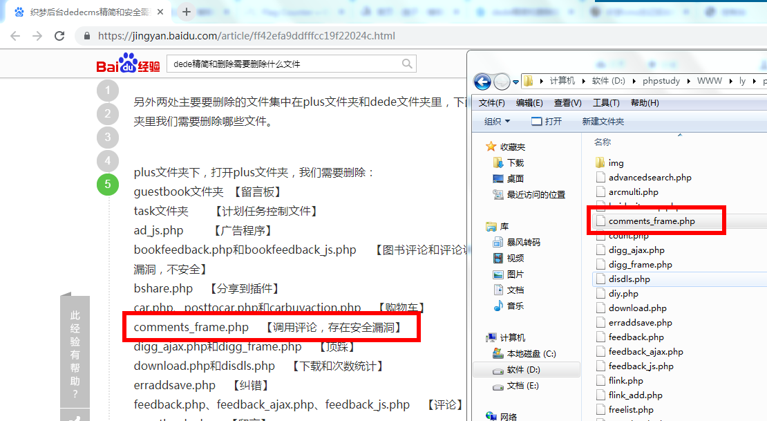 第九步:plus 目录下的 comments_frame.php (调用评论,存在安全漏洞) 直接删除掉