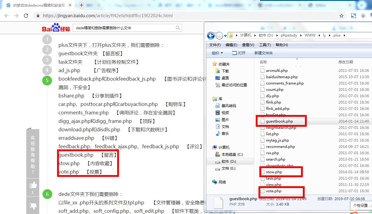 第十四步:plus 目录下的 guestbook.php(留言插件) 和 stow.php(内容收藏插件) 和 vote.php(投票插件) 都删除掉