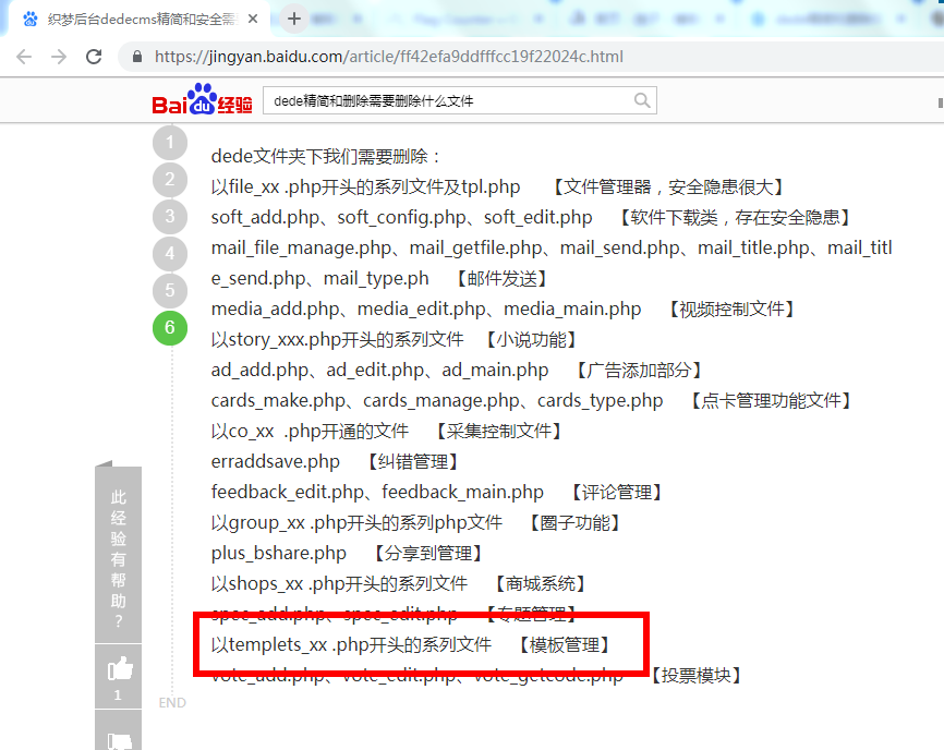 而且百度经验中这里面有一个是错误的,templets_xx .php开头的系列文件 【模板管理】 ,这个是不可以删除的,否则会出问题的~~!