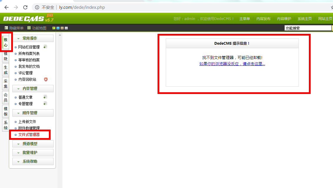 然后我们推出后台重新登录,且尝试访问各个页面。看下是否正常。如果正常证明我们插件文件夹下面的安全基本完成,然后我们来到dede目录下继续开干~~!