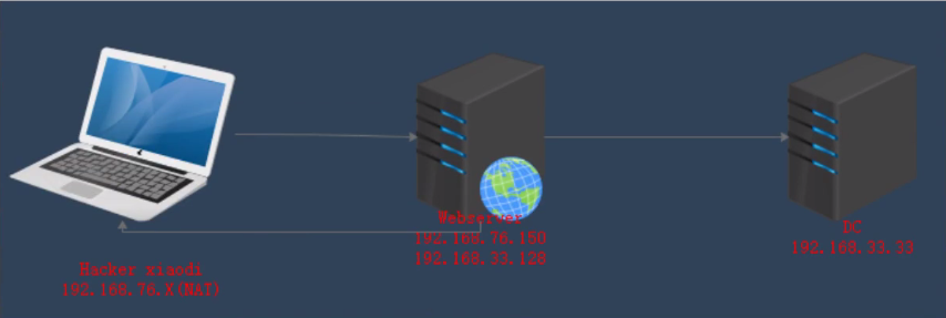 现在我要实现请求连接DC的3389端口:先通过hackerxiaodi连接webserver的外网接口192.168.76.150,然后借助33网卡连接DC的33.33。