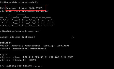 <1>在Webserver上执行以下命令,把自己的2222端口给3333,并监听