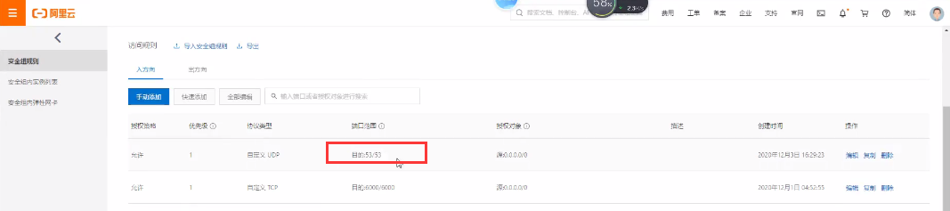 <1>云主机Teamserver配置端口53启用-udp(只有阿里云主机有这个端口问题,其他主机一般没有)