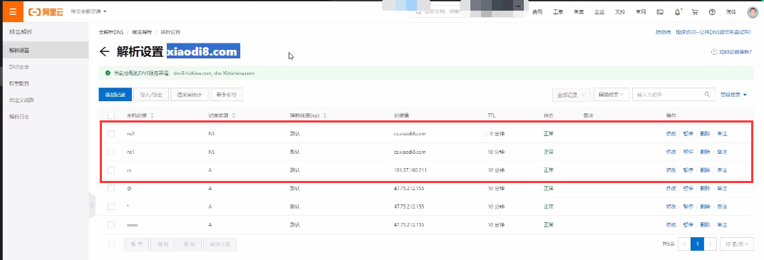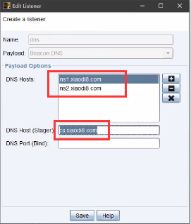 <3>配置DNS监听器内容如下:ns1.xiaodi8.com、ns2.xiaodi8.com、cs.xiaodi8.com