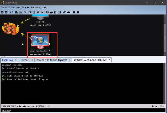 应用层是在实战中经常用到的,之前两个层面会经常被防火墙拦截(网络/传输层),下面用DNS隧道来实现 cs上线。