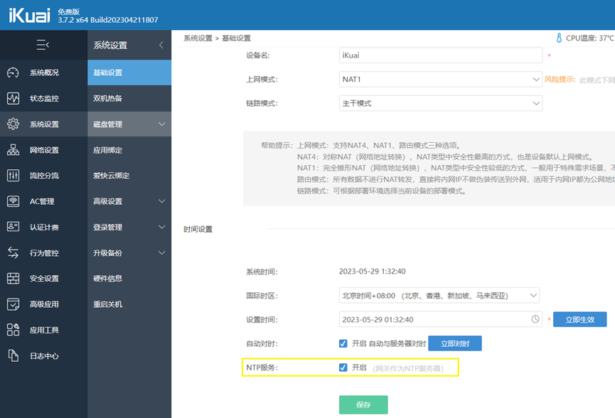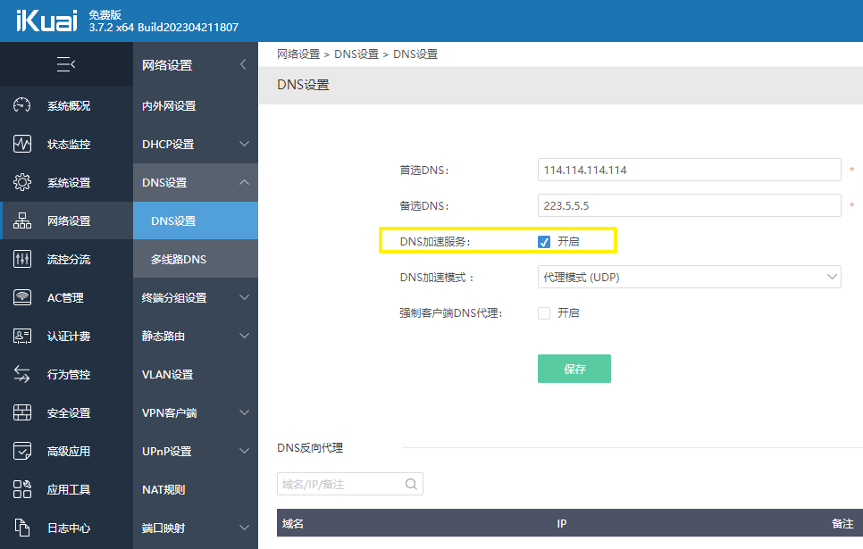 然后就找到一个教程,是用ikuai实现内网NTP服务自动对时,发现我也确实是没有手动启用DNS加速服务,只是激活了NTP服务,在启用DNS加速服务之后的确能够正常进行同步