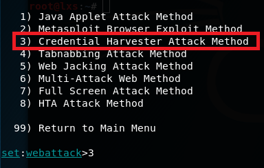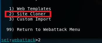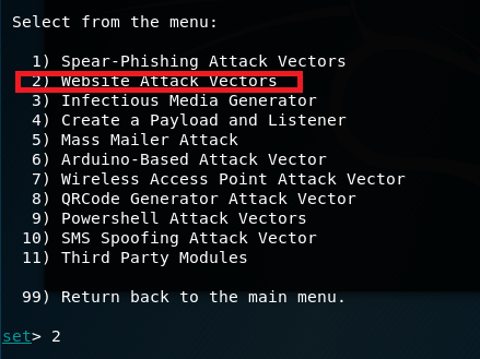 选择2即钓鱼网站攻击向量