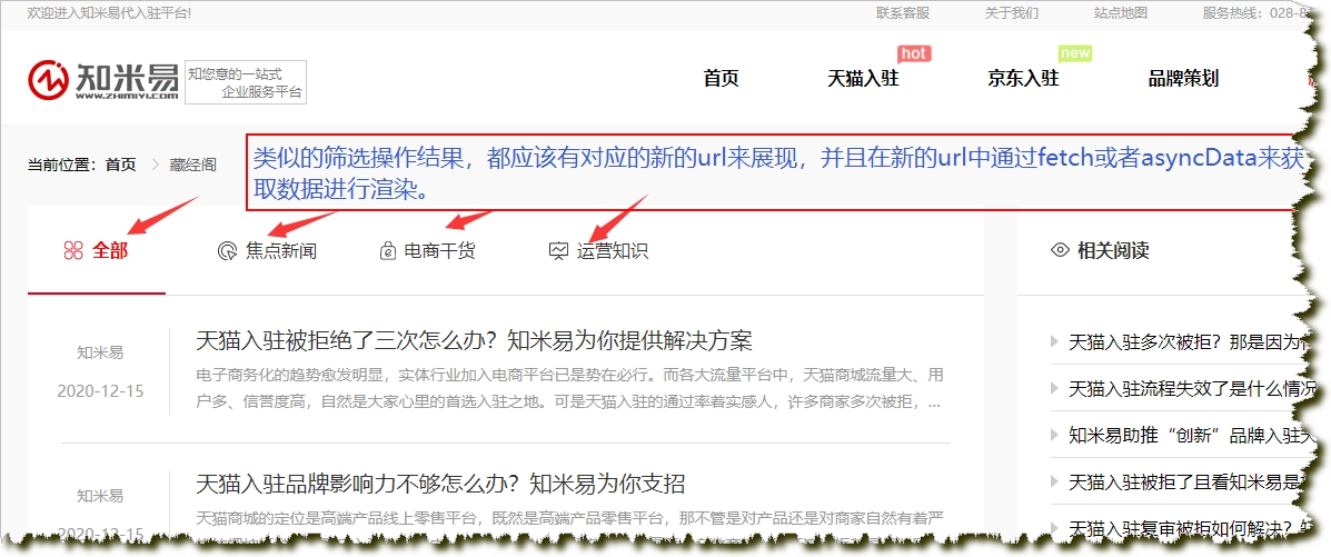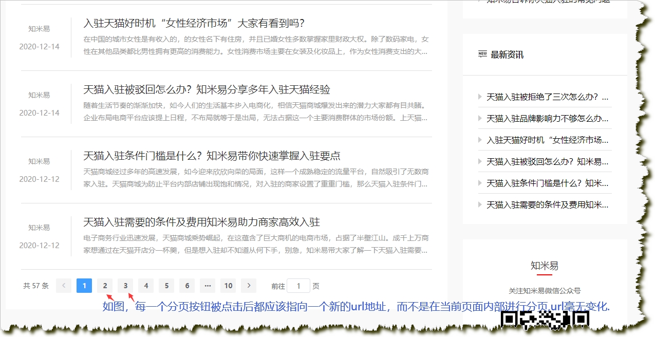 文章列表分类、排序、等各种筛选操作的结果都应该对应一个新的url,原因和第三点一样。详情参考页面(知米易)