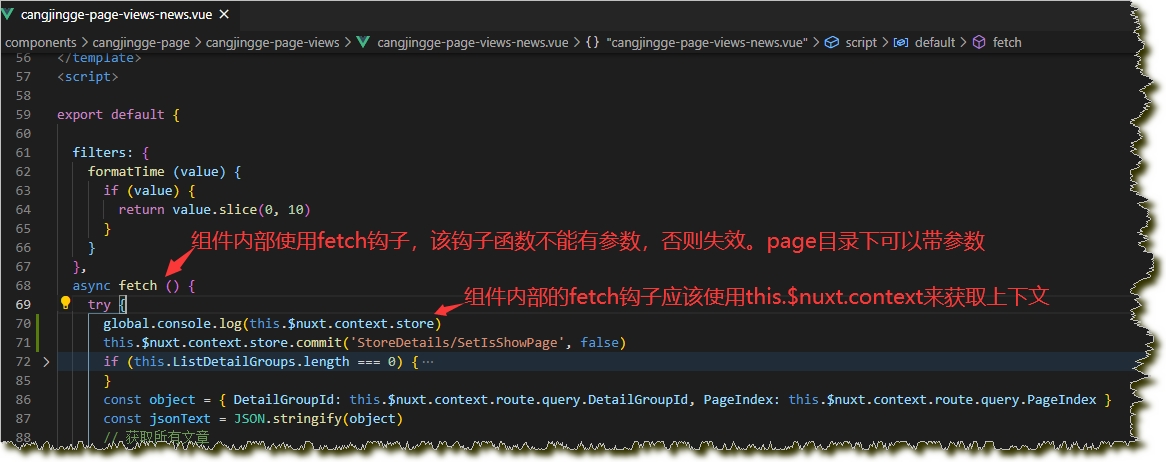 组件内部使用fetch钩子,该钩子函数不能有参数,否则fetch钩子不会执行。page目录下使用fetch钩子可以带参数。