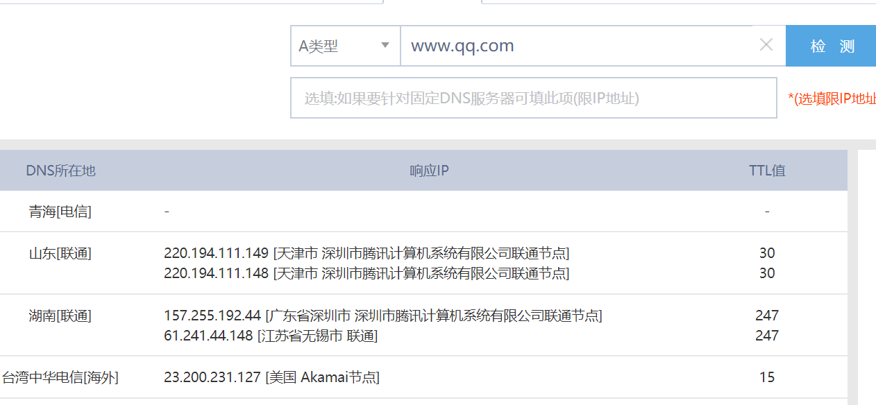 当然也可以通过一些其他工具查看,比如站长工具DNS域名查询 http://tool.chinaz.com/dns