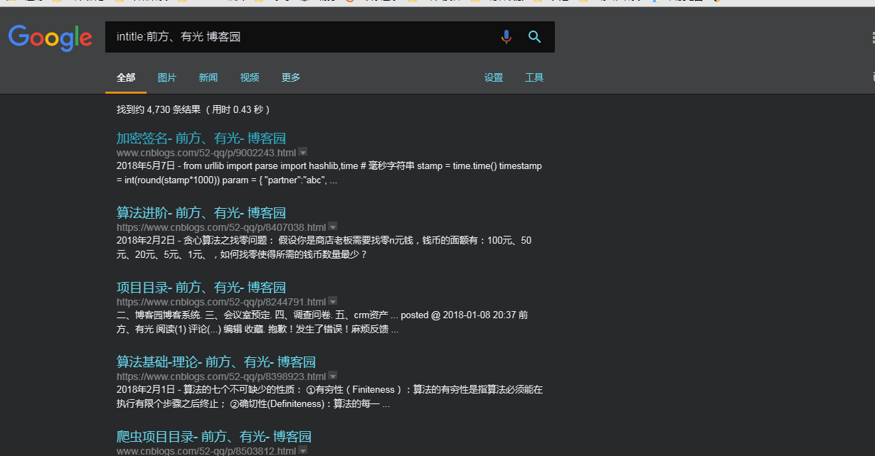 语法:intitle:前方、有光 博客园