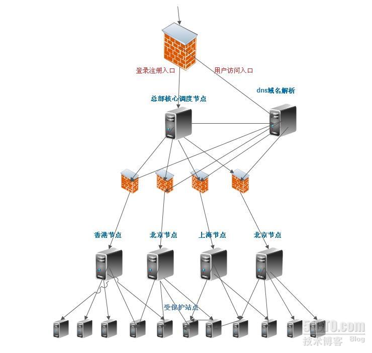 1、总部核心调度节点负责,修改DNS服务器记录,根据不同的ip geoip不同的后台cdn安全节点,负责用户的注册,添加网站真实IP,并把最后的设置同步到各个地方节点的nginx 上