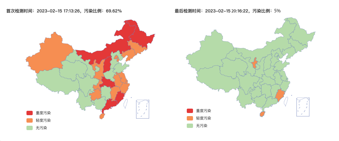 污染统计模块以可视化图表,更加直观地对比出DNS加速污染处理效果,展示您的域名当前是否被污染、污染占比、被污染地区以及各地区的污染程度。