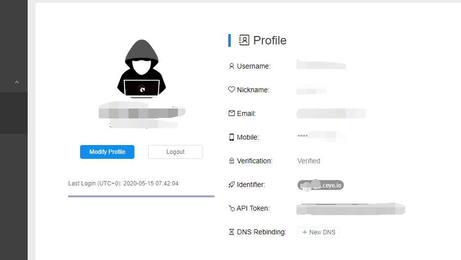这是一个免费的记录dnslog的平台,我们注册后到控制面板会给你一个三级域名:xxx.ceye.io,当我们把注入信息放到四级域名那里,后台的日志会记录下来,还是之前那个例子,我把它放到四级域名的位置。