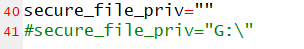 2、当secure_file_priv为G:,就可以读取G盘的文件。