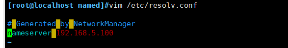 vi /etc/resolv.conf #修改完后立即生效 nameserver 192.168.80.10 或 vi /etc/sysconfig/network-scripts/ifcfg-ens33 #修改完后需要重启网卡 DNS1=192.168.80.10 systemctl restart network