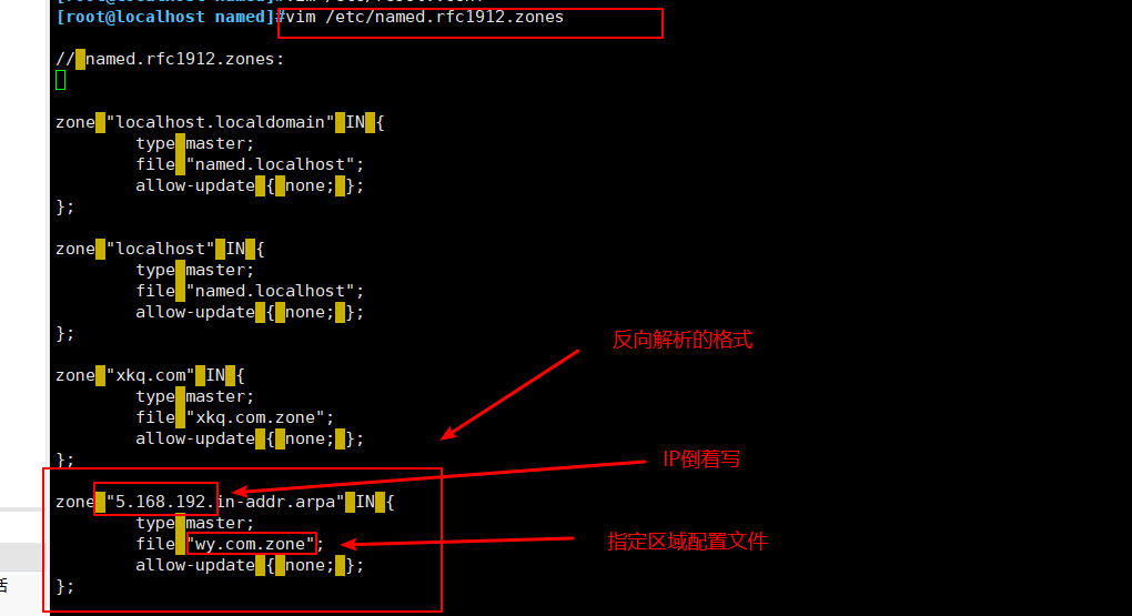 1、修改/etc/named.rfc1912.zones配置文件,添加反向区域配置