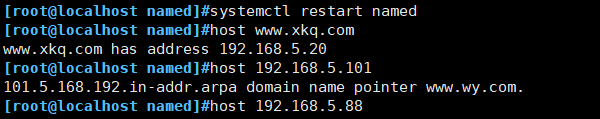 nslookup www.clj.com #测试解析域名 nslookup 192.168.80.100 #测试解析ip systemctl stop named #停止named服务 nslookup www.clj.com nslookup 192.168.80.100