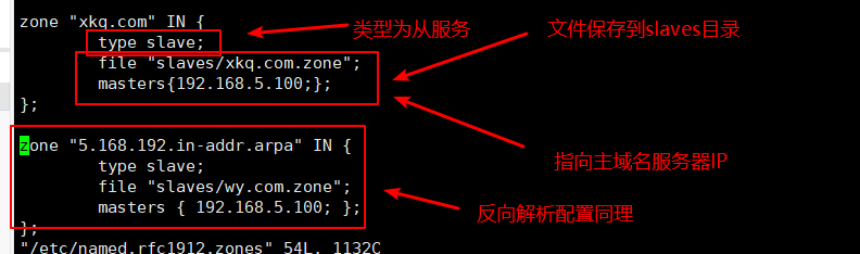1.3、.修改从服务器的区域配置文件,添加正反区域配置
