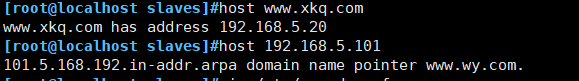 zone "clj.com" IN { type slave; #指定类型为从区域 masters { 192.168.80.78 }; #指定主服务器的ip地址 file "slaves/clj.com.zone"; #下载的区域数据文件保存到slaves目录下 }; zone "80.168.192.in-addr.arpa" IN { type slave; masters { 192.168.80.78 }; file "slaves/clj.com.zone.local"; };