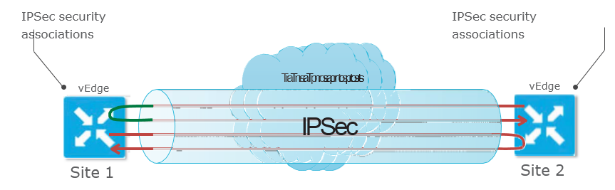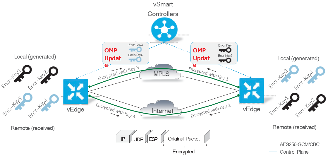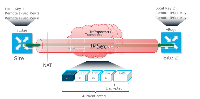 - 每个vEdge都其本地IPsec加密密钥作为OMP TLOC属性发布