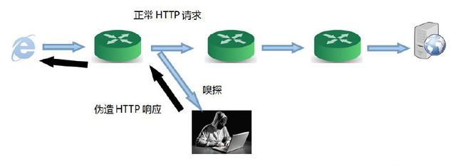 所谓的HTTP劫持呢,是指来自网站的服务器的数据在到达亲们的浏览器的半路上时,其数据被劫持并遭到篡改,这种情况一般出现在以http协议传输数据的网站上,因为这些数据是明文传送的。