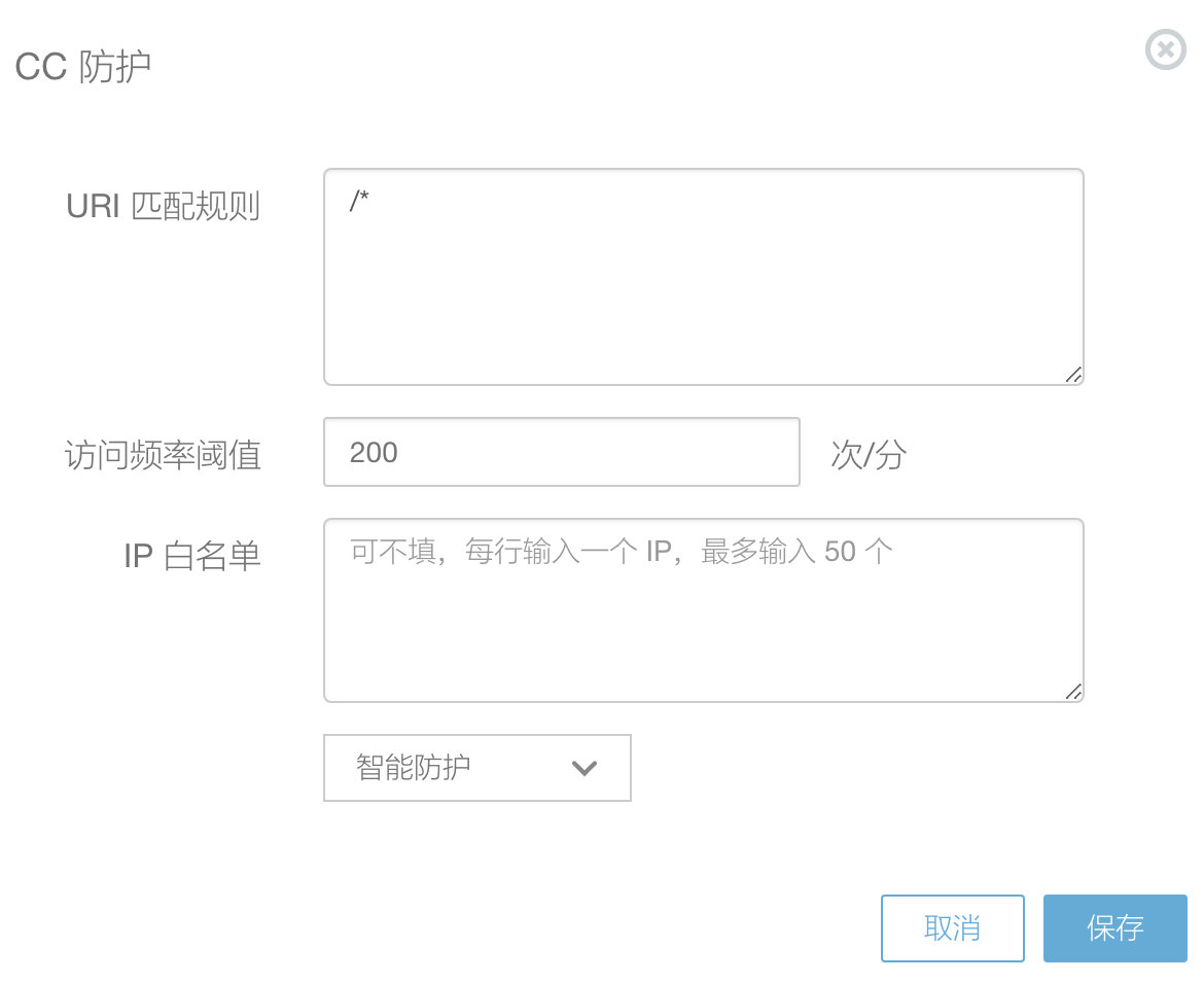 建议CC防护频率限度要小于ip访问限制的频率限度,因为用户因为IP被误判导致的封禁,用户体验会很差!