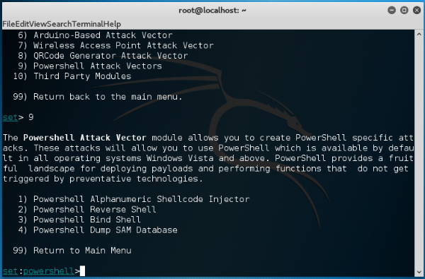SET(Social Engineering Toolkit)是一个开源、python驱动的社会工程学渗透测试工具,提供了非常丰富的攻击向量库。是开源的社会工程学利用套件,通常结合metasploit来使用。