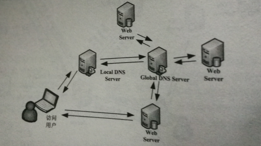 即通过DNS 解析成不同的IP,然后用户通过IP 来访问不同的目标服务器。这种负载均衡是由DNS的解析来完成的,用户最终访问哪个Web服务器是由DNS Server来控制的,在这里就是下面的Global DNS Server来动态解析域名服务,这种DNS 解析的有点是用户会直接访问目标服务器,不需要经过其他代理的服务器,速度快,但是因为DNS 在用户本地和Local DNS Server 都有缓存,如果某台Web服务器挂了,那么就很难及时更新用户的域名解析结构。如果用户域名没有更新,那么就会无法访问该域名。