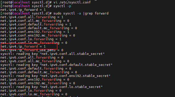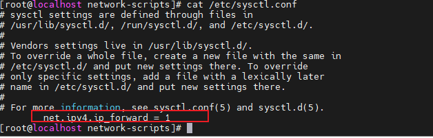 2、 内核参数: net.ipv4.ip_forward IP转发开启,命令 cat /etc/sysctl.conf