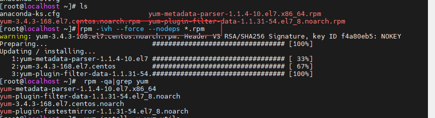 (2)安装YUM,查看YUM源是否安装,安装滤过,rpm -qa|grep yum