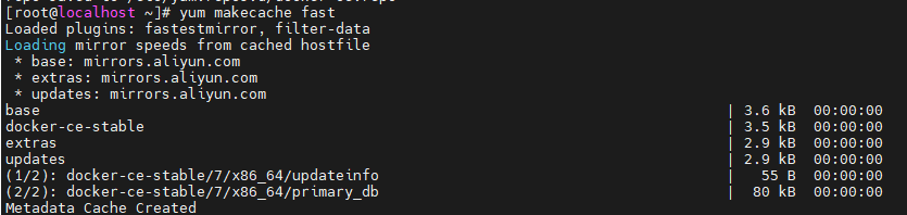 (3)更新 yum源搜索索引,命令yum makecache fast