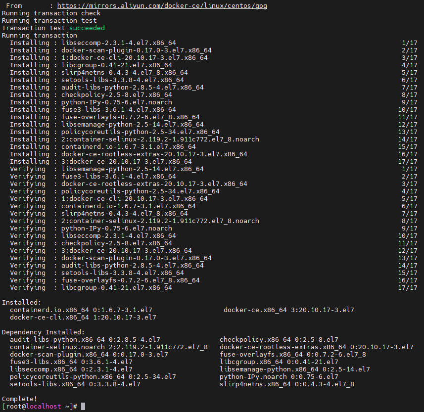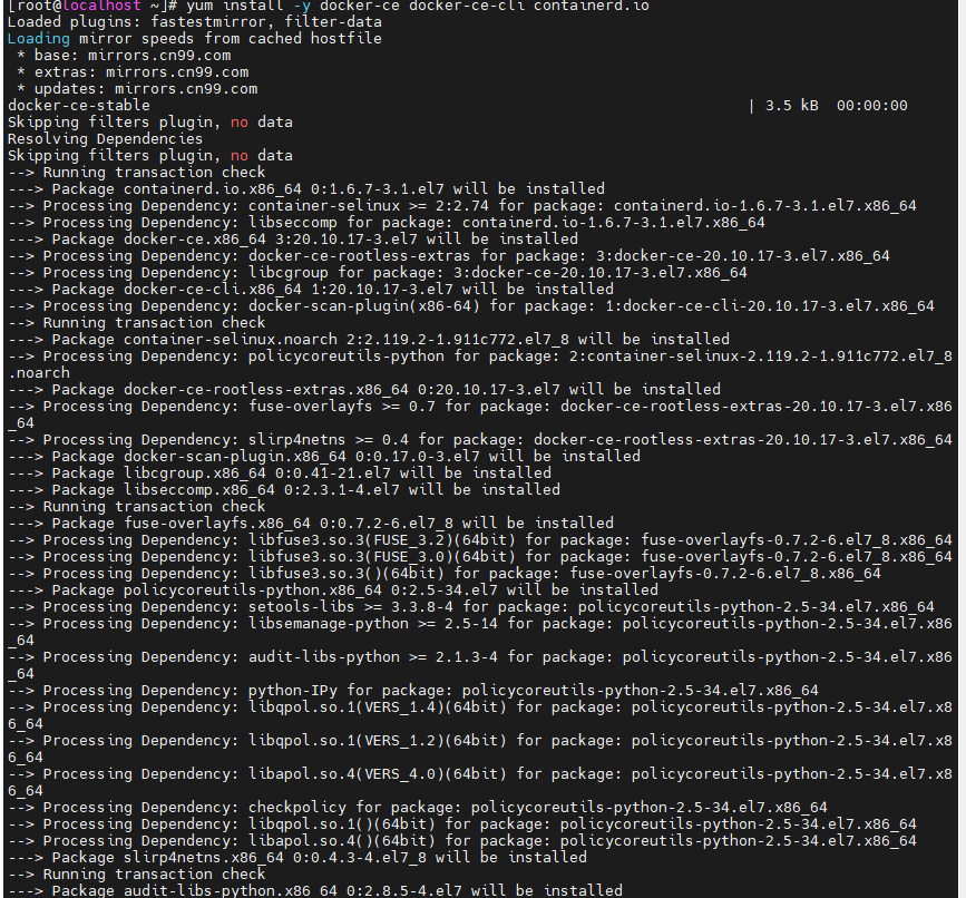 (4)安装docker服务,yum install -y docker-ce docker-ce-cli containerd.io