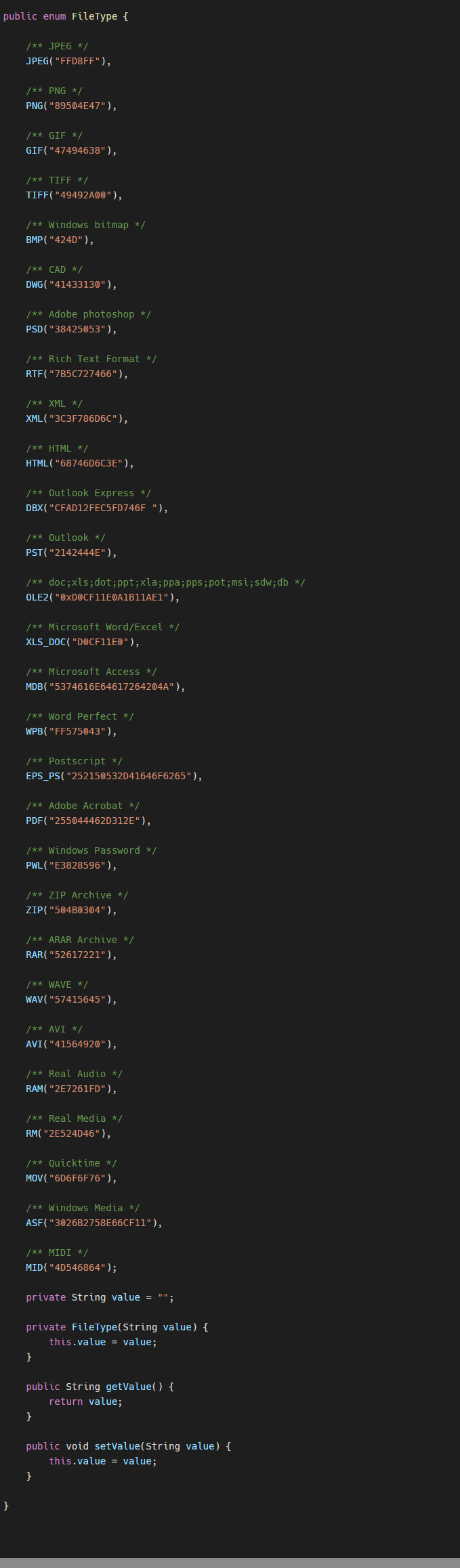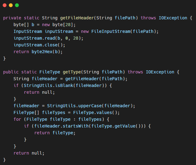 以上便是文件类型的魔数,然后我们通过获取文件的文件头与文件类型的魔数相比较来判断文件类型