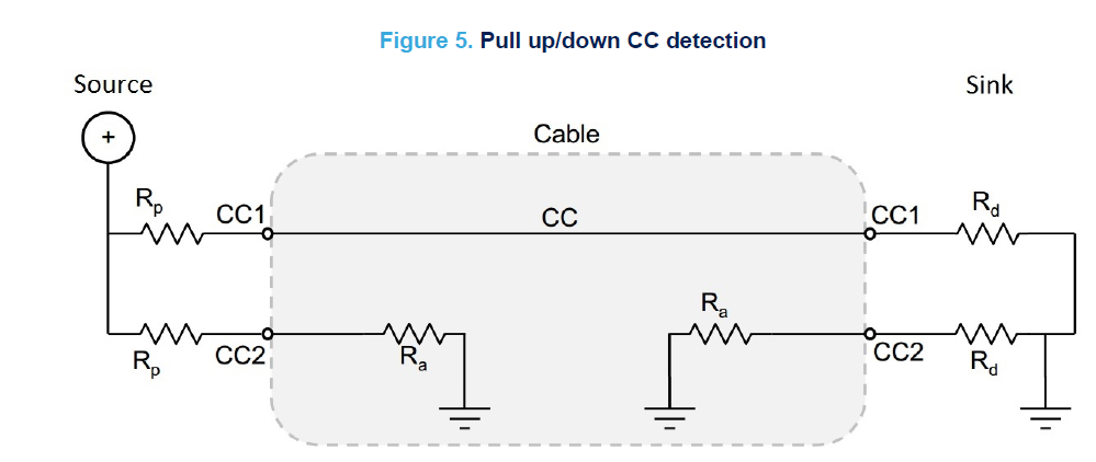 • a source must assert Rp pull-up resistors on both CC pins