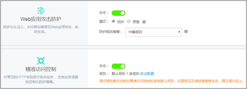 4.根据页面提示,配置Web应用攻击防护和精准访问控制。
