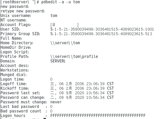 ⑤创建用户,将用户加入samba服务并设置samba账户的密码