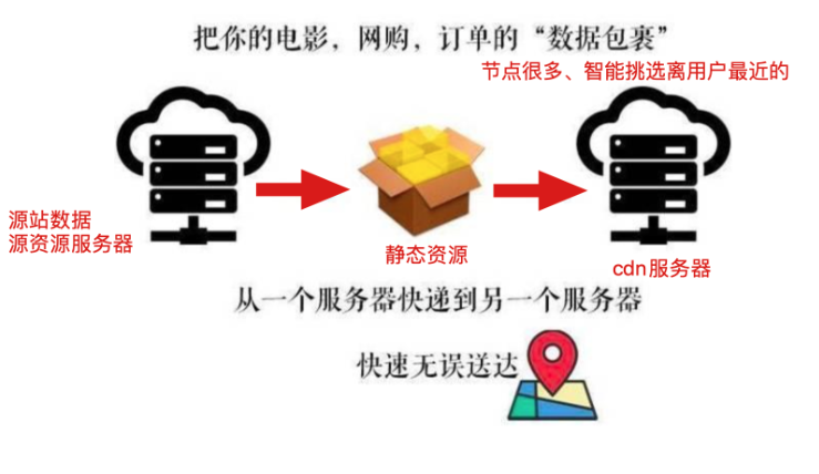 - 通俗的说CDN就像是网络中的快递小哥,把资源高效的送到客户电脑上。
