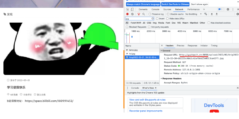 pic.yuchaoit.cn的请求,都会被转发给static.yuchaoit.cn获得相同的数据。