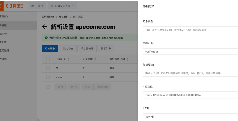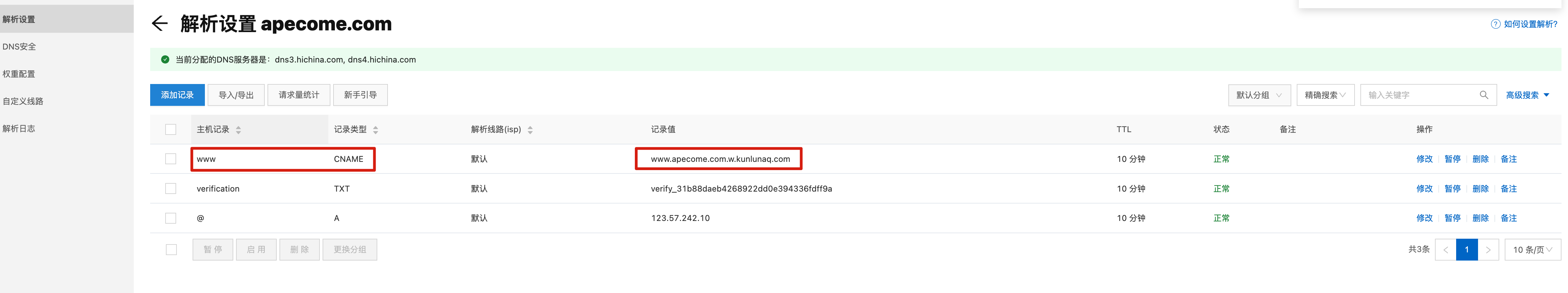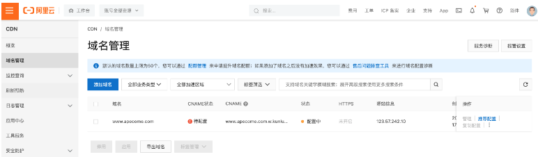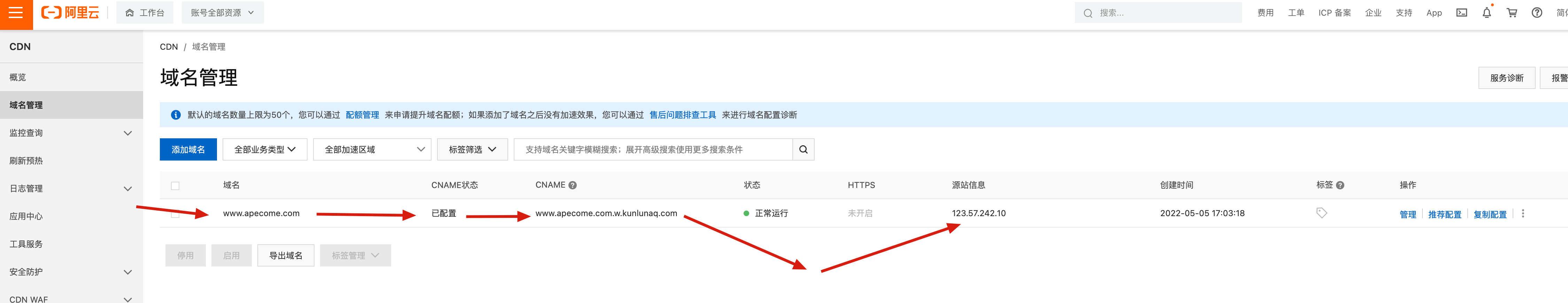 添加加速域名,也就是你暴露给用户的域名,支持泛域名 www.apecome.com