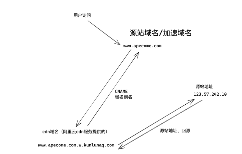1.简单说就是 创建好了cdn后,会得到一个cdn域名 2.你需要将你需要加速的域名(如cdn.yuchaoit.cn),解析到这个cdn域名上(设置CNAME) 3.然后就会根据上述超哥讲的cdn工作原理开始解析